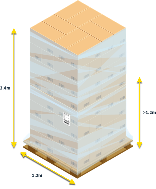 A pallet of any height which weights 1 tonne will be charged as a full pallet space. This is because no other freight can be loaded on that space as the maximun carrying weight for that space has been reached (ie: - 1,000 kilograms per pallet footprint)